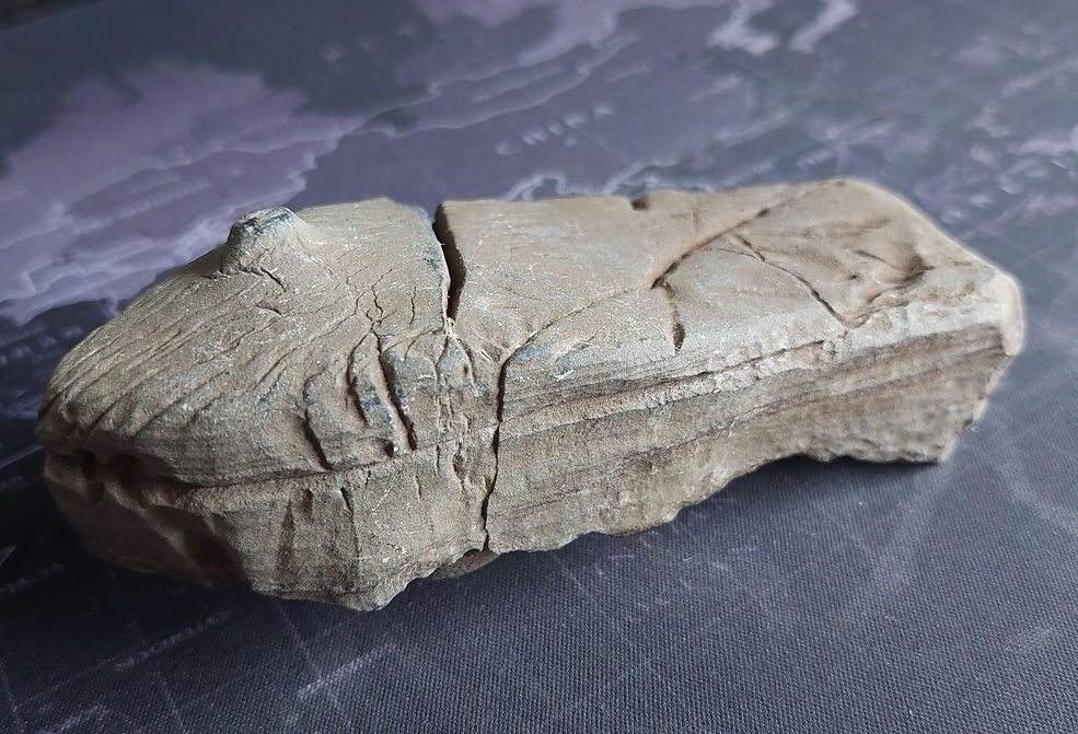 Meteorite with melt shelves, a stairstep ablation. March 15, 2025. Hmad Merzouga